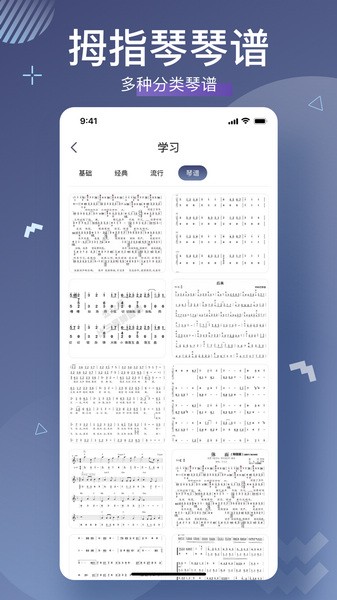 1. 提供多种曲目和难度级别的拇指琴曲目供用户学习和练习。