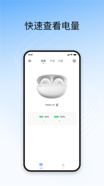 - 您可以通过app快速的掌握耳机的状况,随时都可以获取耳机的电量;