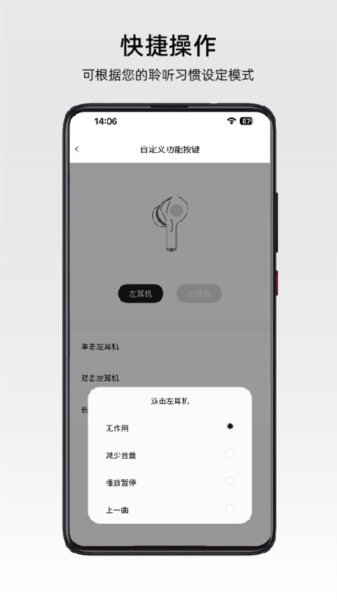 【快速降噪】还可以对耳机开启降噪模式,这样就能帮助用户快速降低耳机的噪音,让你获得更好的体验。