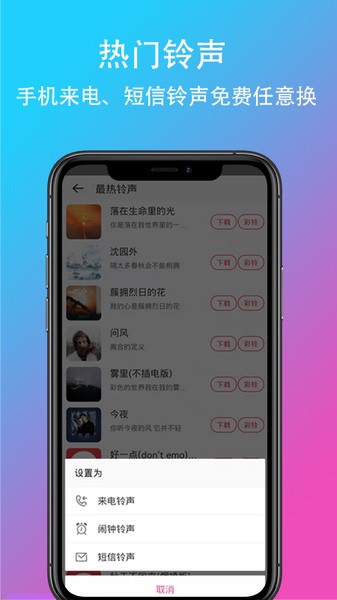 2.是一个集铃声、彩铃、铃声裁剪为一体的手机来电铃声视频铃声大全APP