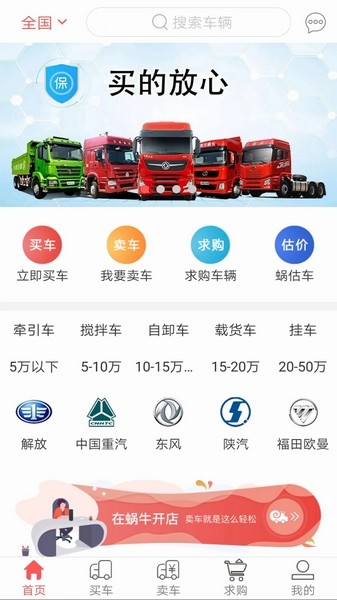蜗牛二手货车交易平台是一款非常优质的货车交易平台,通过这款软件能够帮助用户快速的买到自己心意的二手货车,有着非常丰富的货源供用户进行选择,并且该平台针对每一辆货车都进行了整体的估价,并给出对应的建议,同时该软件还提供了15天包退换,首付20%等服务,让用户买车更放心,满足用户的各种需求,有需要的小伙伴快来下载吧。