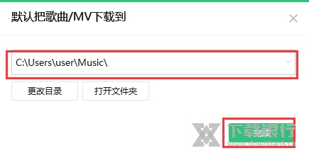 4、用户还可以点击界面上的下载目录设置歌曲或mv的保存位置,用户可以点击更改目录,选择合适的目录位置。如果用户已经下载完成但找不到在哪里,可以点击打开文件夹选项,直接就可以到文件的下载位置,用户就能够快速找到下载的歌曲文件。