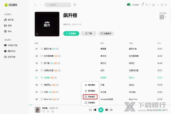 出现四个选项让你选择,选择单曲循环就能一首歌一直播放了