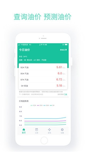 2、油价趋势一步先知:通过国际油价和汇率,软件独家估算下周油价,让你提前规划加油计划。