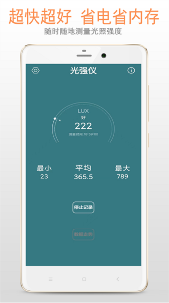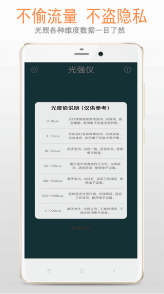实时在线检测: 使用手机即可在线实时检测周围的光强度,快速准确地获取当前环境的光线情况。