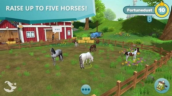 1、游戏的场景很丰富,色彩也很鲜艳,这里有很多的环境设计,玩家子在自己的马厩里饲养起自己的小马驹;