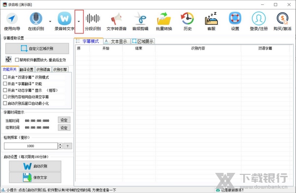 现在打开视频取字幕功能,如图,点击【自定义区域识别】,框选字幕区域,