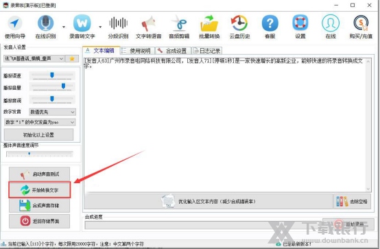4.文本编辑完成后,点击录音啦左下方的“开始转换文字”按钮,录音啦便开始执行将文字转语音的指令。