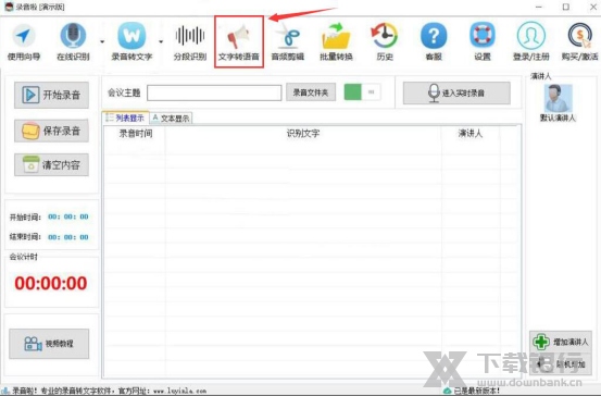 1.首先,用户打开录音啦软件,在软件菜单栏中点击“文字转语音”。