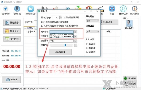 第三步: 这里我们首先要注意,录音设备一定要选择正确
