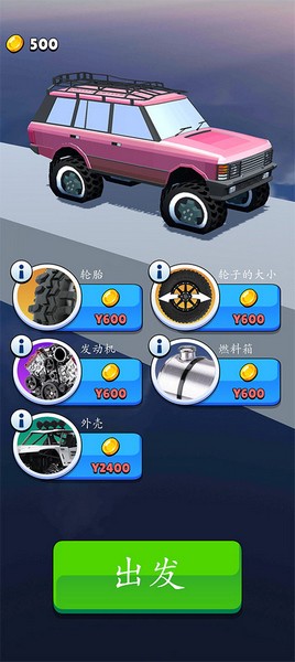 2、可以使用金币来升级轮胎、发动机、外壳;