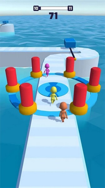 4、游戏中你将控制小人不断的向前奔跑,奔跑过程中你会遇到各式各样的障碍、阻力阻碍着你前行,而你需要克服这些障碍,并领先他人最快抵达终点。