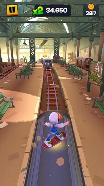滑板英雄游戏中有很多角色和滑板可供选择,你将进入地铁世界,完成一系列跑酷任务。