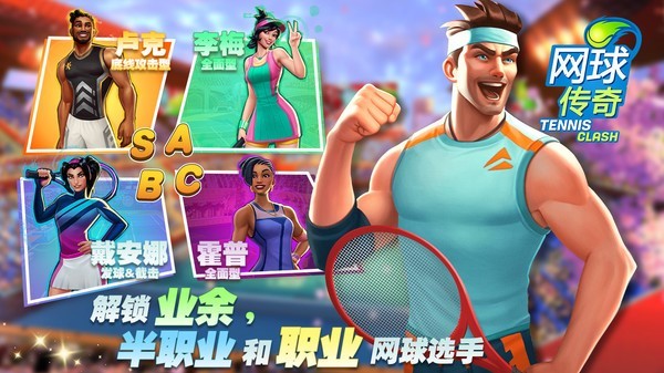 网球传奇安卓版是一款网球竞技类游戏,玩家可以在这里随时进行刺激而真实的网球比赛。游戏中的画面是非常精致的,同时有着具备竞技性的操作方式,让玩家可以感受指尖操作对决的乐趣。游戏中还有多给角色,每个人都有不同的优点,在不同的方面有着各自的优势,选择符合自己玩法的角色来和其他玩家进行比赛吧。