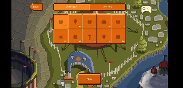 游戏一共有两种玩法,战役模式和无尽模式。战役模式也就是其他游戏中的关卡模式,每个关卡都需要面对不同的陷阱挑战,并且难度逐级增加。无尽模式则是各种陷阱随着我们挑战的进行出现,直到我们死亡。我们先从战役模式说起,点击选择关卡然后进入游戏。