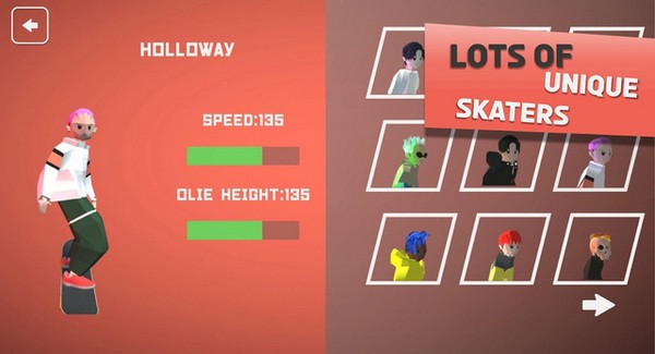 游戏中玩家将操控你的角色完成滑板挑战,更多的滑板PK完成,解锁一个个滑板PK,成为最终的滑板之王吧。