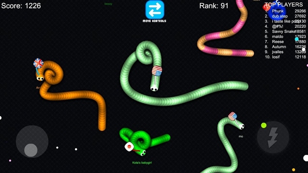 在Slink io中控制蠕虫很简单,因为完全使用手指来控制爬网。蠕虫会不断沿您的手指方向滑动,因此转动爬行蠕虫游戏就像移动手指技能一样简单,可以快速提高速度,从而使您快速摆脱敌方蠕虫的困扰。 Slink .io游戏具有卡通风格的图形,并且没有文字,声音或音乐,因此无论是在学校还是在工作中,都是安全的游戏。通过在社交媒体上共享游戏,您可以赢得更多敌人。