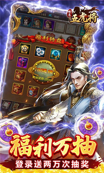 每日签到免费获得次数,抽奖获得海量蜂鸟五虎将游戏内道具,武将碎片,装备碎片等等!