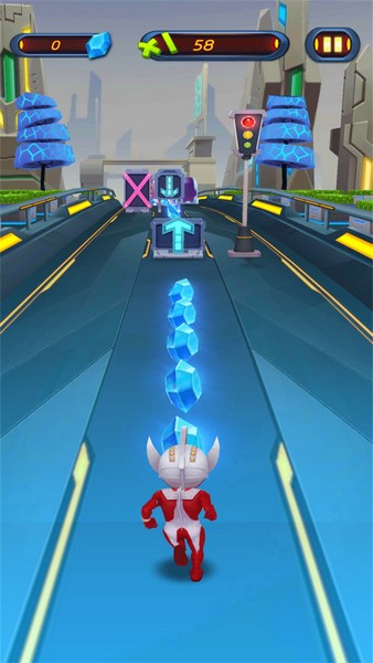 热血竞赛手游是一款奥特曼题材的跑酷类游戏,在这里玩家可以使用超多不同的奥特曼角色在各种场景中进行奔跑。场景中除了有大量的障碍物之外,还有很多道具和钻石可以拾取。钻石可以用来强化奥特曼的能力,使其能够更加轻松地应对关卡中的困难。此外游戏的操作也是很人性化的,单手也能完成操作,且能适合多个年龄段游玩。