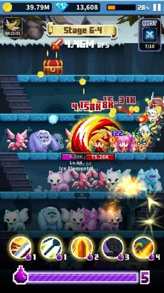 最终狂点幻想内购破解版是一款点击类游戏,游戏采用经典的像素风,在游戏玩家需要控制角色去地下城进行冒险,刚开始只有3名主角团,后面玩家需要不断通关打败怪兽,获得金币、宝物,就会有陆陆续续的小伙伴加入你的队伍,小编这次带来的版本是破解版,玩家进入锁定钻石为无限个!金币使用不减少反而增加!让玩家面对BOSS能容易轻松战胜它。