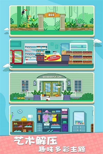 3、游戏拥有多种趣味主题设计的场景关卡,在这里你需要有很强的逻辑思维能力,看看自己的大脑运转速度够不够快;