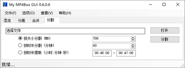 4、My MP4Box GUI可支持众多媒体文件,并提供分离、连接和自由分段(切割)工具,用户可根据需求选择,比之mp4box采用命令方式要简单的多!!
