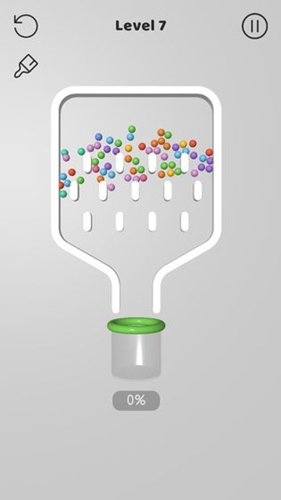 2、游戏玩法很有趣,你需要按不同的顺序去掉瓶中的别针让瓶子上方的彩球顺利进入到出口外才能通关。
