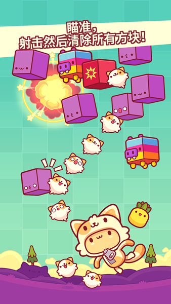 穿上你的猫猫衣,在五彩世界中完成任务,阻止邪恶的方块博士还可以制作可爱的Piffle球来收藏。