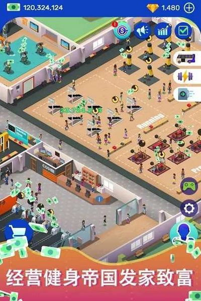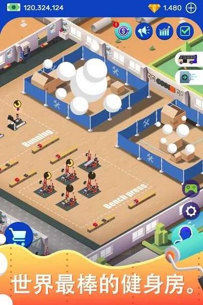 4、新建健身区域,增设新式运动空间,明智管理你的健身帝国。升级设施,迎合顾客需求。顾客的反馈能够帮助你发展事业。