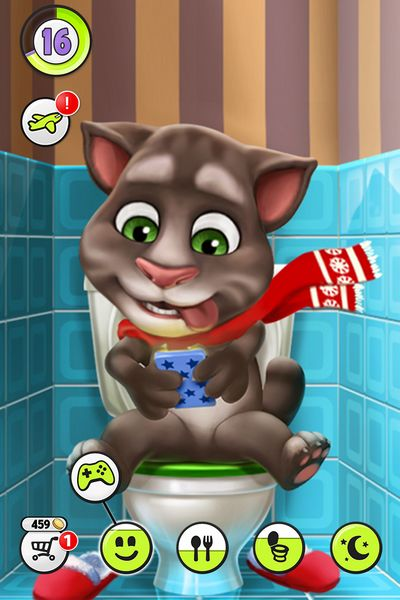 3、有时汤姆猫需要上厕所时,马桶图标会显示红色,这时,需要点击马桶,让汤姆猫上厕所,上完厕所一身轻松,马桶图标会显示为黄色。