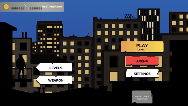 4、可以知道这里的主角是非常厉害的,不断的在这里完成各种不同的关卡的内容,购买和升级武器吧。