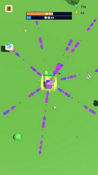 最后在说下“冲刺”的技能。当你的方块总数达到25块时,就可以使用“冲刺”技能了,它可以让你的整体方块快速向前方冲刺一段距离。使用完后,该技能将进入冷却时间。 方块越大,使用后的冷却时间越长,所以合理使用该“冲刺”技能,逃跑、追击都是不错的选择。