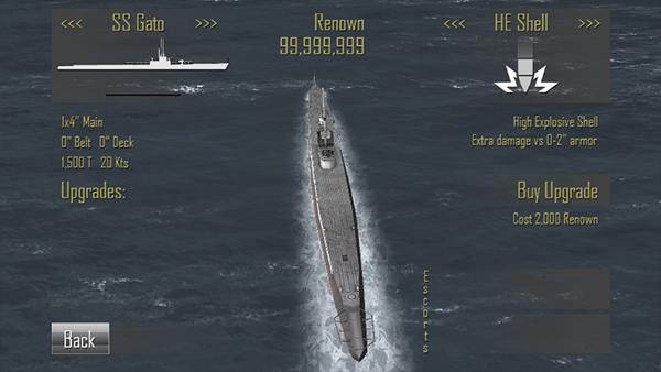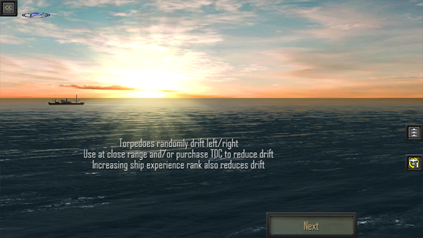 2、鱼雷:选择“鱼雷”动作,用滑块瞄准,然后点击“发射”。鱼雷随机向左或向右漂移,最好在近距离使用。使用改进鱼雷(仅限美国)和鱼雷数据计算机升级,分别大大减少鱼雷的失效和提高精度。如果鱼雷不能面对目标,瞄准线会变成白色。