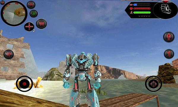 独特创意与融合:将机器人和鲨鱼两种元素完美融合,玩家可操控机器人在陆地和海洋场景中自由切换形态,体验变形带来的乐趣。