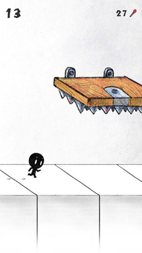 游戏玩法很简单,点击屏幕来控制火柴人往前跑或者往后跑,通过这种方式来避开机关尽可能地冲到更远的地方,每冲过一个机关就能获得一分,游戏中有大量不同的机关等着你来挑战……