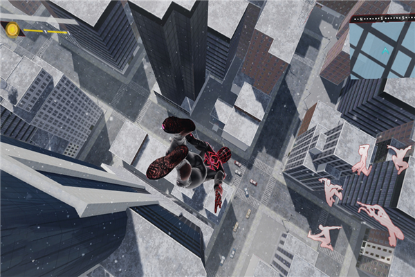 自由飞翔:玩家可以利用蜘蛛丝在城市上空自由飞翔,探索广阔的游戏场景,保护城市安全。