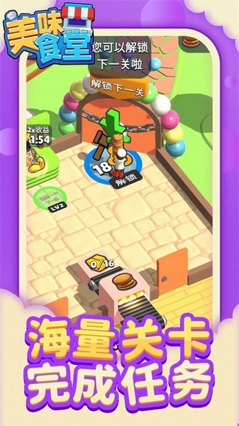 《美味食堂》是一款超级好玩的餐厅经营游戏,你可以在这里体验当老板的乐趣。游戏里有很多关卡需要完成,每个关卡都有不同的任务,比如做出顾客满意的菜品或者合理安排资源。赚到金币后可以升级设备或提升角色能力,这对餐厅的发展很重要。