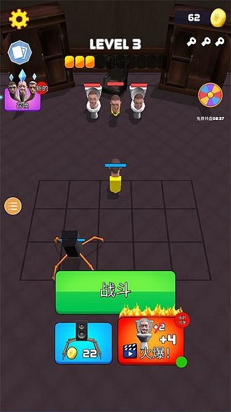 当有两个同等等级的武器和马桶后,就可以把它们进行合并,合并之后的伤害和血量也更上一层楼。