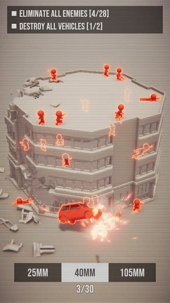5、玩家需要向各个建筑物派遣部队来执行爆破任务。除了为您派遣大量人员外,您还可以安排强大的军用卡车和直升机。