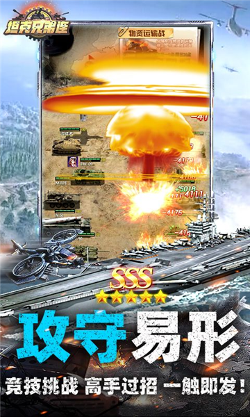 超过百种坦克搭配各类职业,高自由度布阵,高策略性搭配。突击还是稳守,导弹还是轰炸?全部由你决定!
