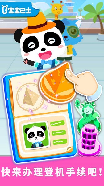 宝宝机场app是由宝宝巴士(福建)网络科技有限公司打造的一款专注于儿童启蒙教育的学习游戏,软件采用动画场景,经典的熊猫形象受到非常多小朋友的喜欢。宝宝机场游戏主要是模拟真实坐飞机的场景,专为儿童提供早教乘机学习服务。乘坐飞机时有许多东西是无法带上飞机的,宝宝们需要寻找飞机上的违禁品,同时还要让孩子们初步学习安全乘坐飞机的相关常识和注意事项,在家也能体验一把坐飞机的感受。