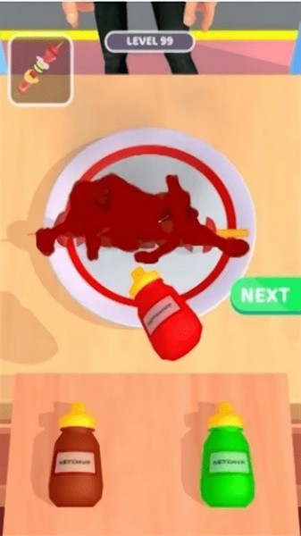 3、调料按顾客需求加,辣椒粉、孜然别搞错,满意度达标才能升级摊位。