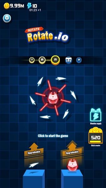 2、点击屏幕即可开始游戏,玩法很简单,玩家将控制一个旋转的陀螺,利用旁边锋利的刀片去击杀敌人;