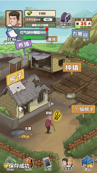 3、进入到自家院子界面,包括养殖、房子、种植和大黑山等场景,不同的场景有不同的任务,