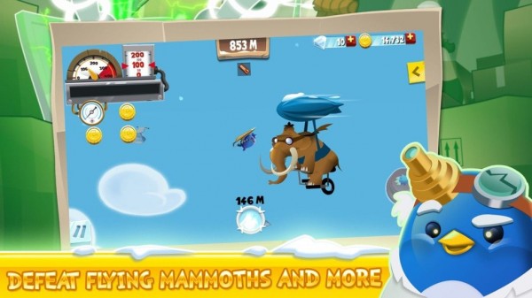 3、升级强化延长飞行:通过拾取金币与道具为小企鹅升级强化,提升飞行器性能,每局飞行时间与距离随强化程度增长,让玩家在持续成长中感受进步的成就感。