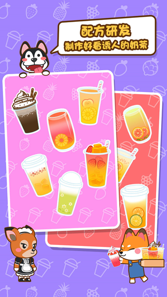 渐渐的,你需要研发新的奶茶来满足各种各样的顾客,你可以自己种植果树研发调制奶茶。和商贩们讨价还价。也会有更多神秘客人等待你来发现。
