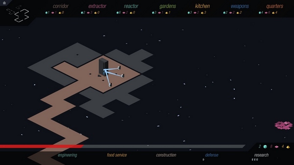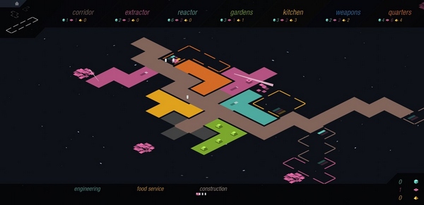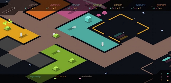游戏中有多种方块功能,比如粉色Extractor能收集粉色资源,蓝色Reator能生产建材和能源,Kitchen可以把庄稼变成食物,Quarters则用来繁衍劳动力。说实话,这些小细节设计得很贴心,而且背景音乐也很棒,太空氛围感拉满。我觉得这种策略游戏特别适合喜欢动脑筋的玩家,尤其是像我这样喜欢规划资源和建设基地的人,每次看到自己的领地慢慢壮大都成就感满满!