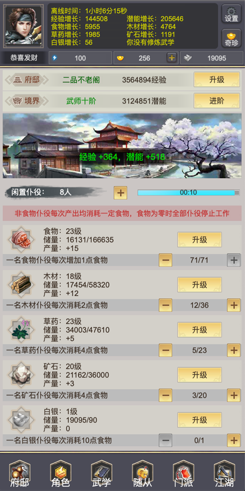 大小门派各有独特的学艺剧情、武学秘籍,以及镇派传家宝。