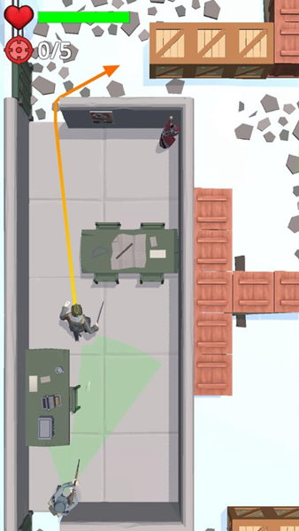 2、小心的接近你的目标,你必须让自己成功的击杀敌人还能全身而退才能完美的通过关卡