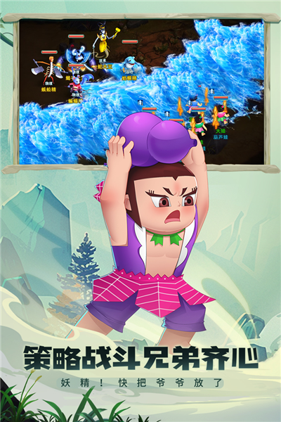 游戏中的战斗采用回合制策略玩法,玩家需要根据葫芦娃的技能和属性,合理安排战斗顺序和策略。
